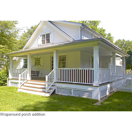 What’s to be done with a plain Cape-style house that has virtually no architectural character, minimal outdoor living, no mudroom and an undersized garage? Give it a complete exterior makeover and expansions in the right places. Nearly the entire front façade was extended about 8’ to lengthen a short garage, create an entry mudroom between the garage and the kitchen and add a covered porch plus a portico leading to the front door. At the other end of the house, a wraparound covered porch was added to provide shaded outdoor seating. Construction included a new roof with shingles made of recycled plastic that closely resemble real slate, new clapboard siding and shutters. Inside, the mudroom was fitted with built-in cubbies and a window seat, the kitchen cabinets were repainted and fitted with new counters, floors were refinished and walls repainted. A subsequent project added a pool house designed to match the main house.